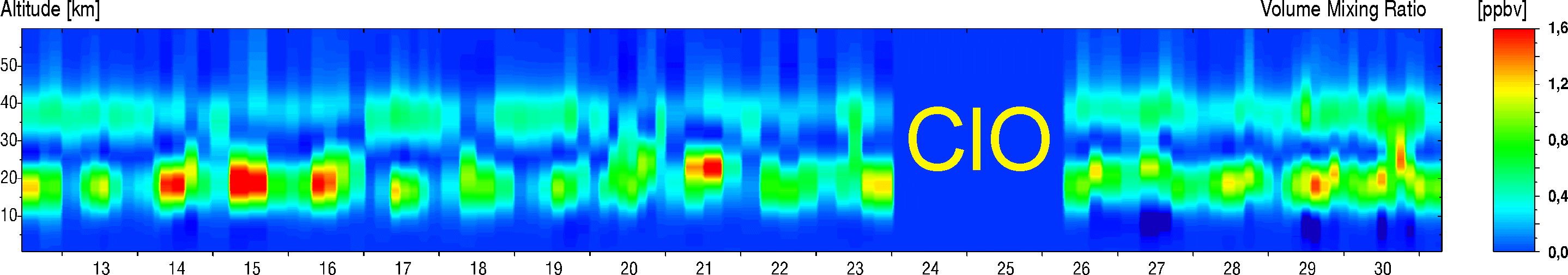 here for March 17, 1997, showing in particular the strong variation of the lower ClO layer in contrast