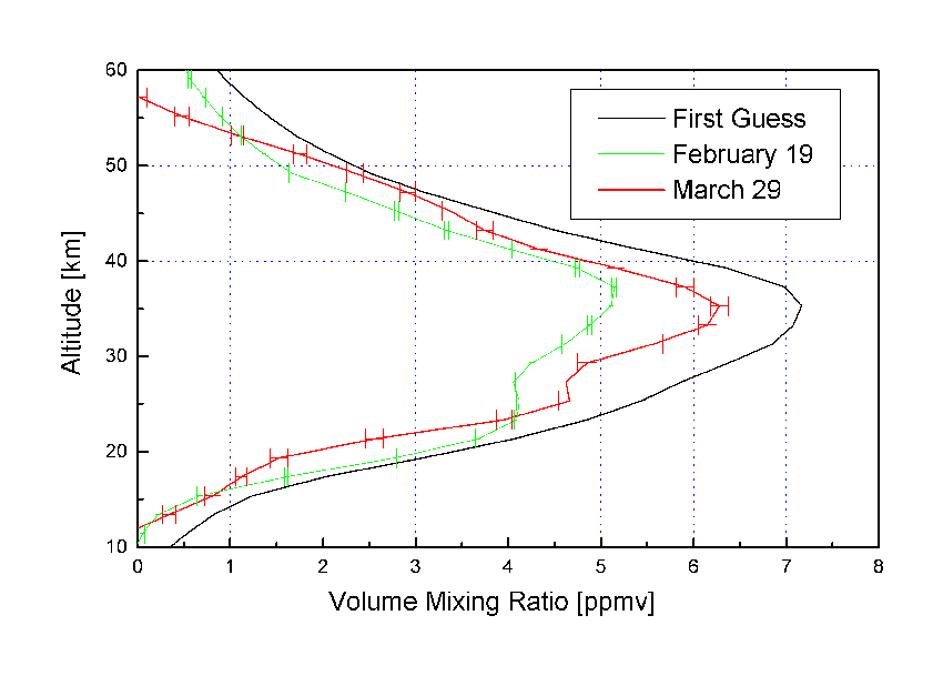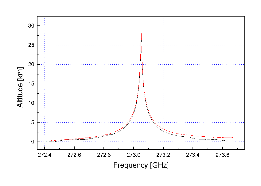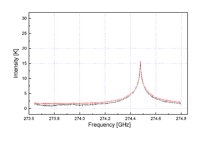 The 273.051 GHz ozone line, measured on March 29 (left) and the 274.478 GHz line, measured on February