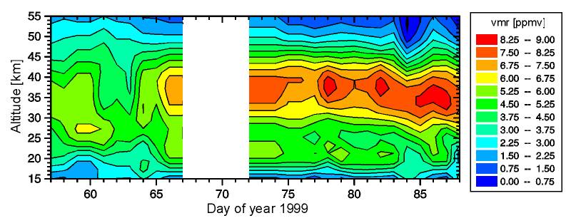 there is an increase of the vmr values in an altitude at about 35 km in March