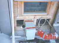 ![]() (35 kB) A more detailed view on the new periscope. With the rotatable tubular part the elevation angle is adjusted whereas for the adjustment of the azimuth angle the whole box is rotated. The atmospheric radiation is guided through the axis of the box down to the two mirrors in the lower part of the picture and then down to the radiometer. |